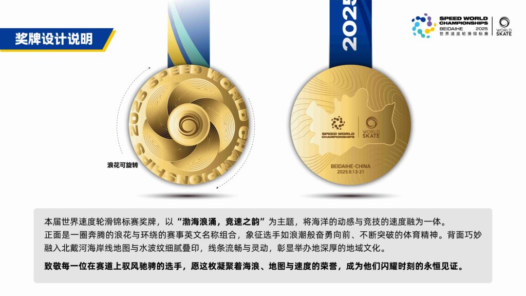 2025年世界速度轮滑锦标赛是由世界轮滑联合会主办的国际级轮滑赛事,于2025年9月13日至21日在中国河北省秦皇岛市北戴河区举行,承办单位包括国家体育总局社会体育指导中心、中国轮滑协会、河北省体育局及秦皇岛市人民政府。竞赛场地覆盖北戴河轮滑运动中心场地赛与公路赛道,以及北戴河区滨海大道马拉松赛道。